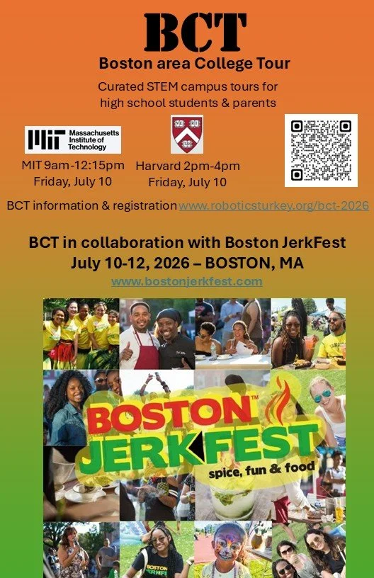 BCT 2026 will coincide with the 13th annual Boston JerkFest food and music festival at the Harvard University athletic fields adjacent to Harvard Business School and Harvard School of Engineering and Applied Sciences. Last year’s inaugural BCT had 45 students, parents, and guardians traveling mostly from NYC area. Please view the experience description, pictures, as well as video at the end of this blog.